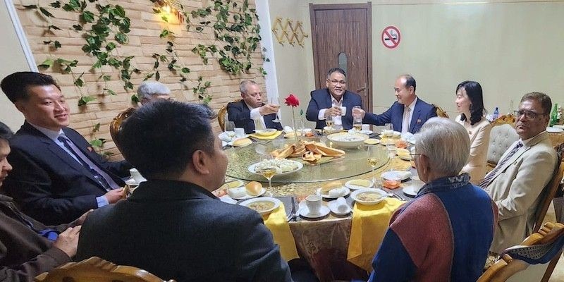 The Asia Pacific Regional Committee for Friendship and Solidarity with Korean People (APRCFSKP) delegation met with the Chairman of the Korea Asia Pacific Exchange (KAPE) Pak Kyong Il at a friendly dinner in Pyongyang, Tuesday (16/4).
